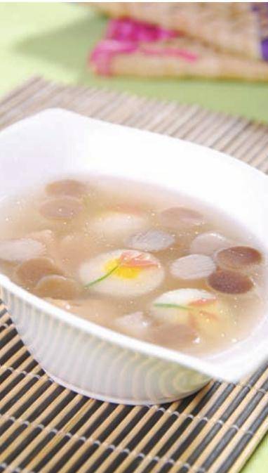 5.燒熱鍋加入味精、清湯,煮沸後撇去浮沫,倒入湯盆內,使鴿蛋浮在湯面上即成。