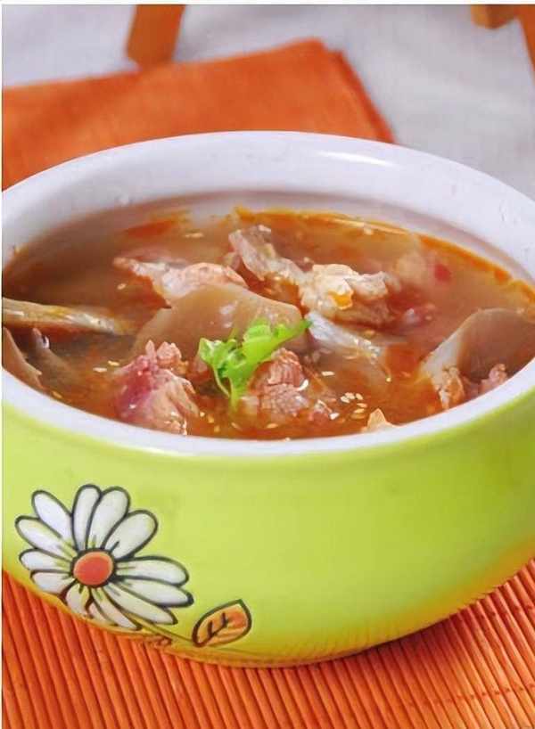 調料:蔥、薑各少許,芝麻、料酒、胡椒粉、味精、辣椒油、鹽、牛肉清湯各適量。