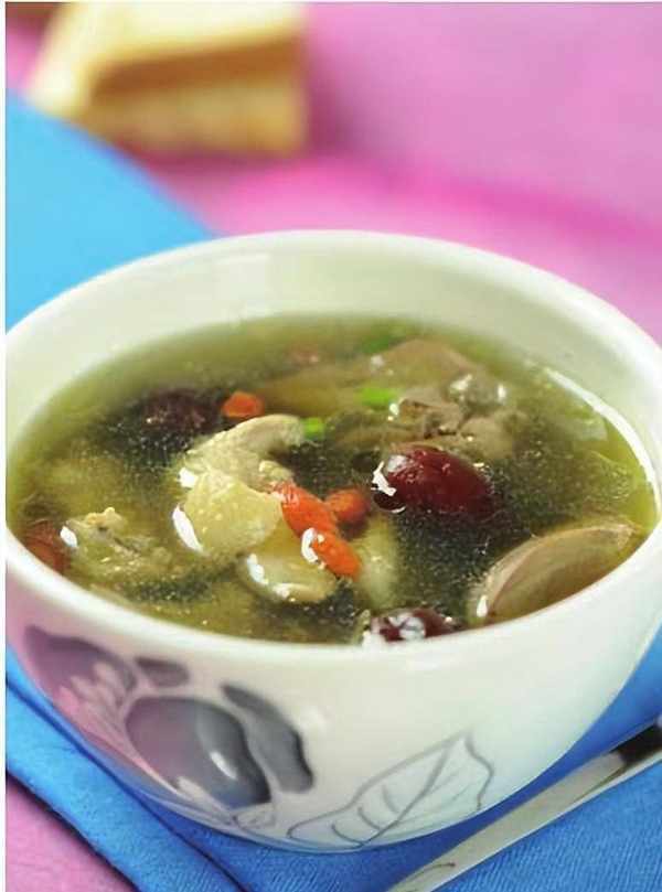 小貼士:枸杞子富含豐富的胡蘿卜素及多種維生素。烏雞的營養也極為豐富,且易被人體吸收,二者搭配煲湯,適宜於孕婦食用。對女性生產後精血虧虛,有輔助食療作用。