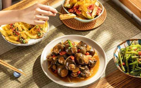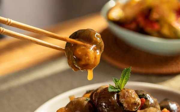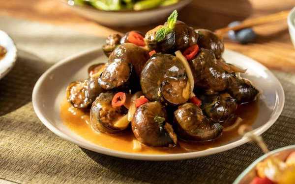 田螺釀往芡汁裡一摁,螺口盈滿瞭鮮潤,再湊近嘴巴急促一嘬,螺肉一下子就到瞭嘴裡。