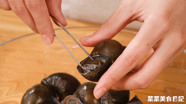 釀餡部分隻取螺頭,靠近田螺底部的軟體位置屬於內臟,建議直接去除。