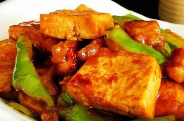 老豆腐燒五花肉:老豆腐切塊備用,五花肉切薄片,煎至兩面金黃備用,原鍋,再加入少許油 將老豆腐入鍋略煎至兩面微黃即可,將煎過的五花肉和老豆腐匯合在一起,加入尖椒,調入一勺海鮮醬,一勺生抽,少許鹽,炒均勻,倒入少許開水,蓋上蓋子燜三分鐘,揭開蓋子,勾個薄芡即可出鍋。