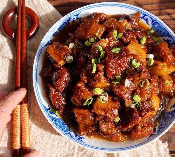 紅燒牛肉:牛腩洗凈焯水後再洗凈,鍋內放菜油煸香八角桂皮花椒幹辣椒蔥薑後再放牛腩煸透,倒入黃酒後蓋上鍋蓋悶一會再放入電壓力鍋,加入適量的生抽、老抽、冰糖、麻辣鮮和漫過牛腩的熱水,電壓力鍋15-20分鐘排氣後倒回鐵鍋裡用大火收幹湯汁。