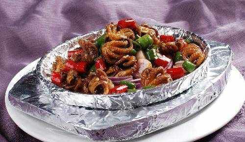 鐵板八爪魚:鐵板八爪魚,菜未到,味先至,香氣沁人,引人食欲。鐵板燒熱,下黃油,洋蔥墊底,倒入八爪魚,淋上醬汁即可。汁不宜過早調制,否則禦廚鮮的香味會散失。你感覺這道美味怎麼樣呢?可以推薦給老友們。