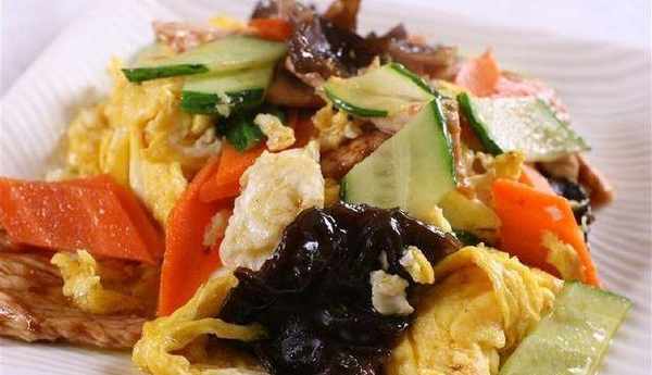 將食材準備好,裡脊肉切片加一點蛋清、料酒、淀粉,抓勻後醃漬二十分鐘左右;黃花和木耳用溫水泡發後清洗幹凈,將木耳撕成小朵。黃花去除花蒂後擠幹水分切段備用,黃瓜斜刀切段,在豎切成片;鍋中添油,待油七分熱時,將雞蛋打散倒入鍋中,炒散後盛出,註意,雞蛋不要過分翻攪,不要太碎;在鍋中留少許油,微熱後加入蔥薑,再加入肉片快速翻炒,當肉片變白後,加入黃瓜片;再加入黃花和木耳快速翻炒,倒入炒好的雞蛋,加少量鹽和生抽提味;用水淀粉微微勾芡,關火後加入芝麻油調味盛出即可。