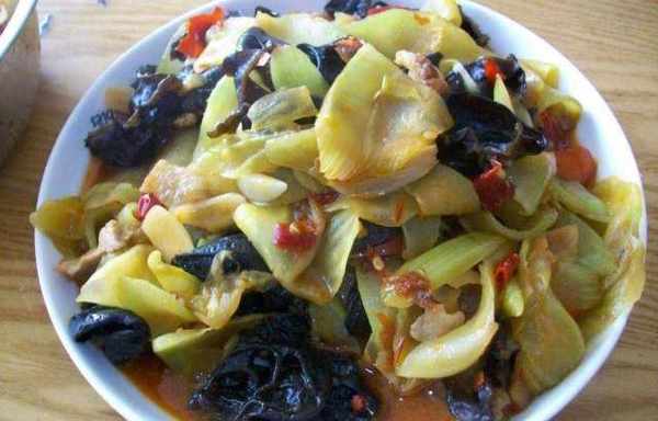 萵筍炒木耳。材料:萵筍根,木耳、蒜米、小朝天椒、醋、鹽、白砂糖、生抽、味精。做法:萵筍削皮切段,在切絲;木耳泡發後也洗凈切成小朵跟萵筍放一塊備用;蒜米和小朝天椒切好備用,燒點水放少許油和鹽,把萵筍和木耳焯水;焯好的木耳和萵筍瀝幹水分,過一遍涼水。拿一個盤放入鹽,味精,白砂糖,醬油,醋調和均勻,鍋內熱油放花椒和小朝天椒入鍋內炒香,加入蒜米爆炒出香味,倒入瀝幹水分的萵筍絲和木耳;加入之前調好的調料;把調料翻炒均勻就可出鍋瞭。