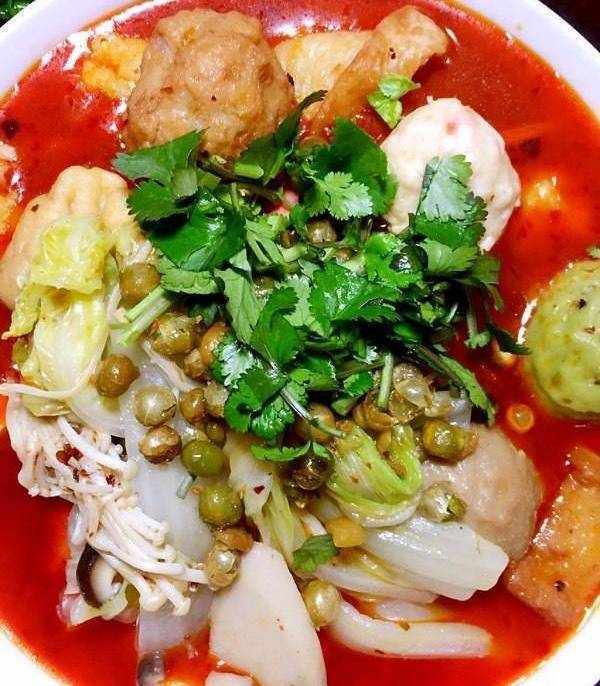 冒菜:冒菜是一道以肉類、豆制品、青菜、海鮮、菌菇類作為主要食材制作而成的菜品,起源於成都,具有四川特色的傳統小吃。冒菜最為講究的吃法為''幹碟'',即在小碟中放置幹的辣椒粉,加上鹽,味精等的調料,將鍋裡燙好的菜在幹碟裡輕輕一蘸,然後就可以送進嘴裡,味道又香又辣,甚為可口。