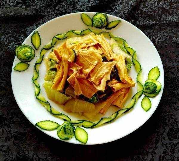 蒜蓉茄汁腐竹:是豆漿加熱煮沸後,經過一段時間的保溫,表面形成一層薄膜,挑出後形成柳條狀,再經晾曬而成!腐竹中含有豐富的蛋白質、多種礦物質、豐富的鐵,營養價值與豆漿相差無幾!這款蒜蓉茄汁腐竹是我傢餐桌上最常見的一道菜,酸酸甜甜的口感配上咔咔脆的腐竹,吃到嘴裡很是過癮!