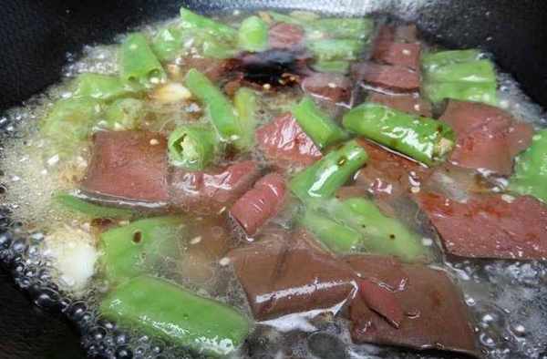 於是,我就做瞭這道尖椒鴨血,誰知道剛上桌就被老爸和弟弟吃光瞭,老媽還怪我鴨血切太大瞭不夠吃……