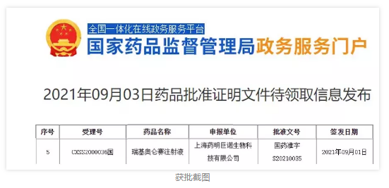 瑞基奧侖賽注射液的獲批適應症與阿基侖賽注射液一樣,以非常快的速度通過審批,主要基於其臨床數據,