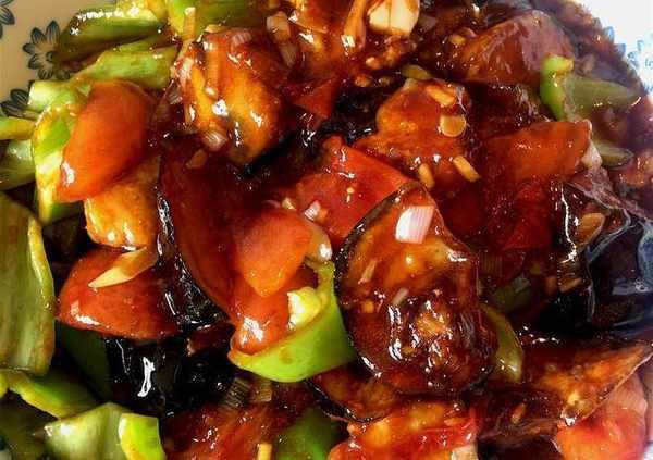 用料: 茄子1個,西紅柿1個,青辣椒1個,淀粉適量,蔥適量,薑適量,蒜適量