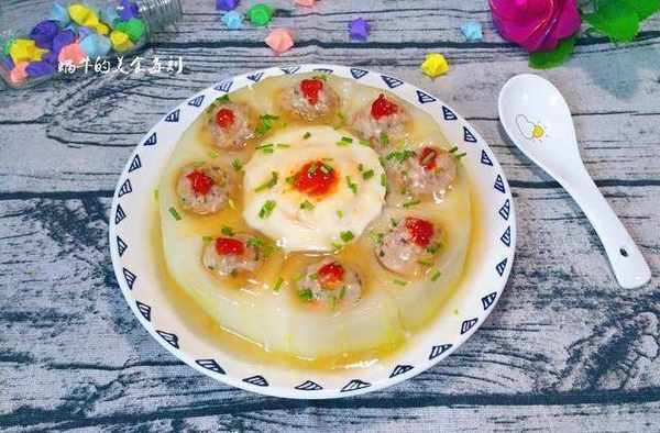 用料:冬瓜300克,豬肉末100克,雞蛋1個。