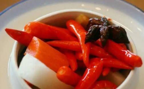 食材:白蘿卜、胡蘿卜、豆角、嫩薑、白酒、花椒、八角、鹽