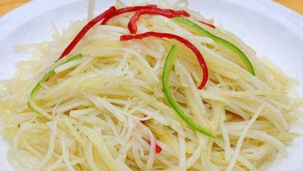 鍋內放油,倒入蔥和辣椒絲爆香,然後下入土豆絲翻炒至斷生,再放入料酒、味精、鹽、醬油、醋等佐料翻炒均勻即可。這道菜咸酸可口,超級好吃。