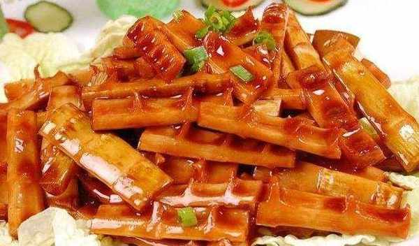 鍋內留底油,放入準備好的蔥花、清湯,加入佐料,再將筍條下入鍋中,小火燜至春筍酥爛,湯汁濃稠的時候打火翻炒幾下,淋上香油即可出鍋。