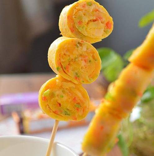 8、卷好後切段,用竹簽串起來就可以瞭。