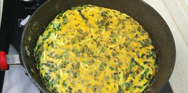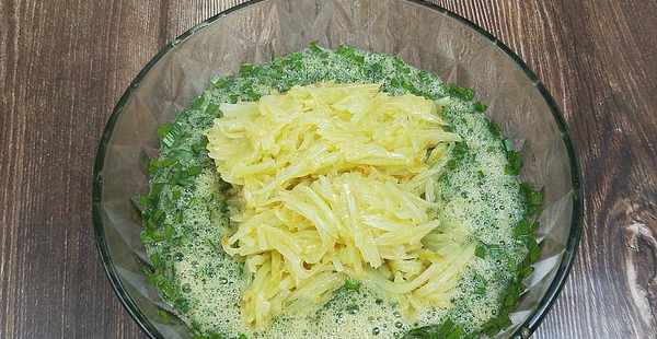 (韭菜1把,雞蛋5個,鹽1勺,胡椒粉適量,土豆1個,油適量)