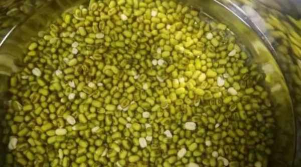 第一步:將綠豆提前浸泡1個小時,泡好後將綠豆洗凈。
