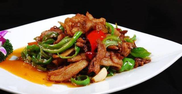 4.炒鍋裡加少量油,油熱後,下青椒絲煸炒到微軟時,出鍋備用。