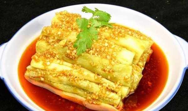 3.將茄子、紅辣椒絲、蒜泥、蔥末與調味料一起拌勻至入味即可。
