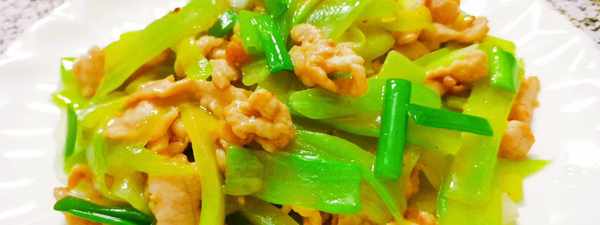 食材:萵筍、瘦肉、薑蒜蔥、生抽、淀粉、鹽、食用油