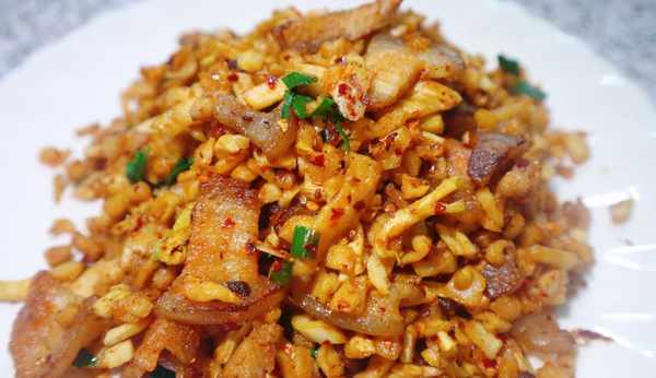 食材:蘿卜幹、五花肉、辣椒粉、蒜葉、薑蒜、十三香、醬油、鹽、食用油