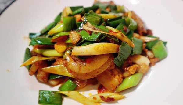 6.關火倒入蒜葉翻炒十多秒出鍋就完成瞭。