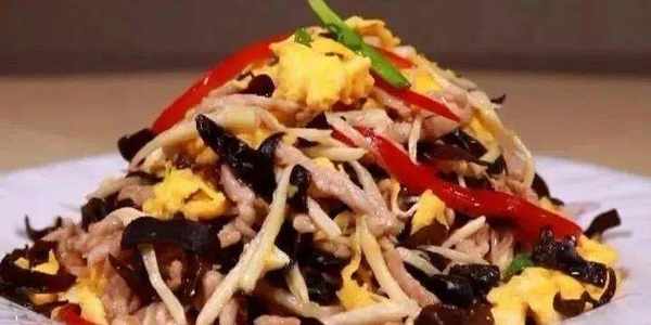 3. 鍋再上火,加入豬油燒熱,先下入肉絲炒熟,再加入醬油、紹酒、蔥段、雞蛋翻炒,然後添入少許清水,淋入豬油炒勻,出鍋裝盤即可。