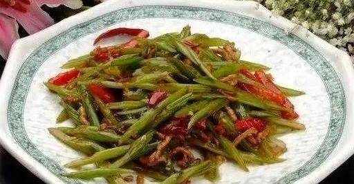 材料:幹凈扁豆、水發木耳,五花豬肉絲、雞蛋、熟豬油、醬油、料酒、鹽、味精、水淀粉、蔥、薑末。