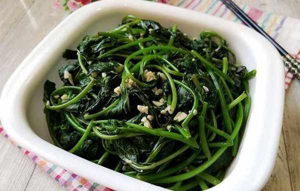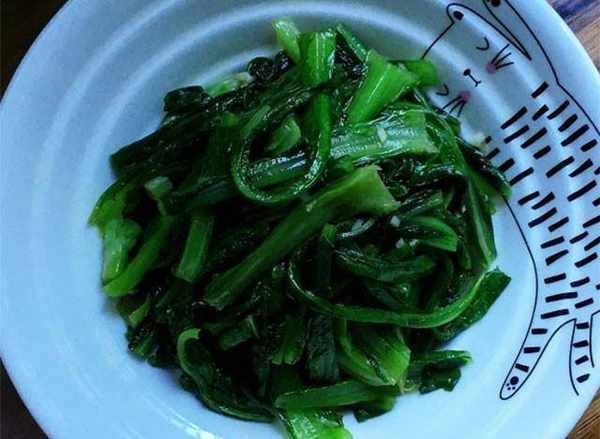 蕃薯葉適量、腐乳5塊、蒜4瓣、料酒1大匙、鹽少許、雞粉1茶匙、糖1茶匙、油2大匙。