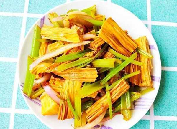 腐竹適量、芹菜適量、紫甘藍適量、油少許、黑胡椒粉少許、味極鮮醬油少許。