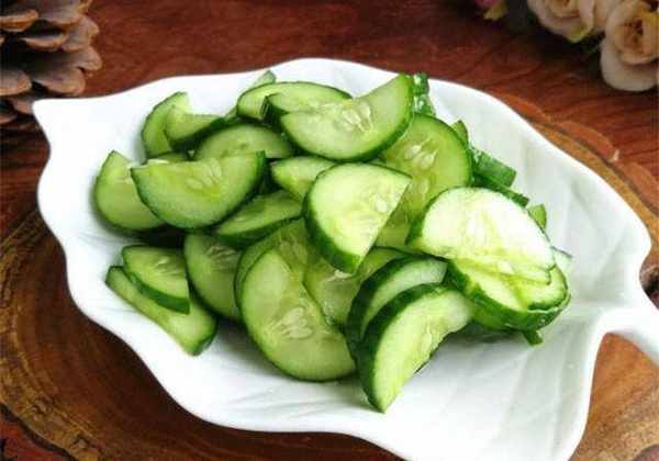 2、切成薄片,加白糖拌勻醃制,等黃瓜醃出水即可食用。