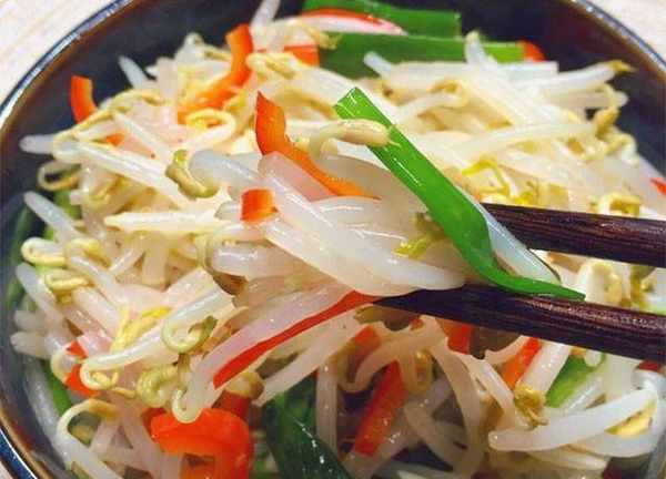 1、2豆芽摘幹凈,特別是有的根變色,影響口感,最好清理一下,清洗幹凈,瀝下水。