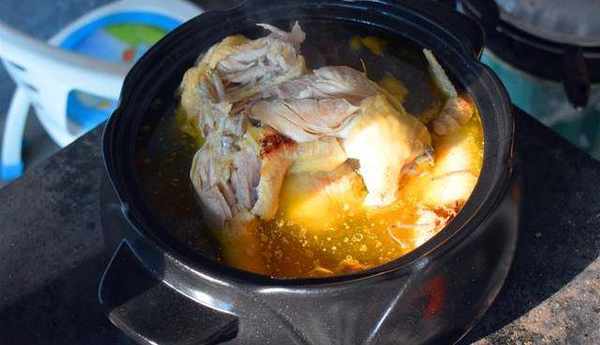 到冬天,北方農村人傢裡都會有這麼一個取暖的火爐,把砂鍋放上去燉,燉開之後再燉個一個小時的樣子,我們的雞就燉的透爛瞭,臨出鍋前加入適量的鹽調味就可以瞭。