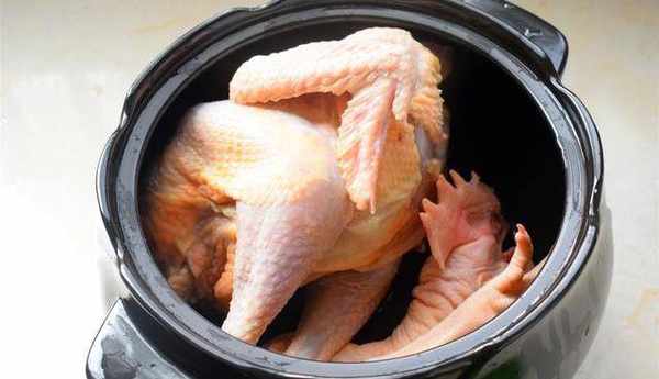 準備一隻三黃雞,雞攤的老板也沒怎麼給收拾幹凈,回到傢我又自己重新給拾掇瞭一遍,本來沒打算要這個雞頭的,但是媳婦說她吃,所以就留著瞭,這直接放到瞭一個5升的大砂鍋裡。
