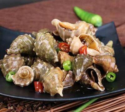 而鍋內還需要放油將其燒熱,然後再來爆香薑絲及幹辣椒,再加入煮熟的海螺肉進去,就可用大火來快炒瞭,然後再加入醬油、料酒、糖、鹽等來炒勻,最後再加入香菜拌勻即可。