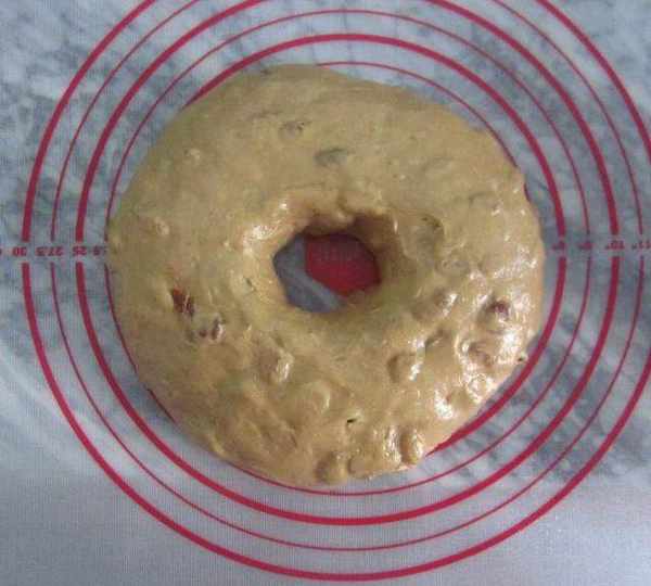 第9步、將洞拉伸到同模具大小後,將面團放進模具裡。