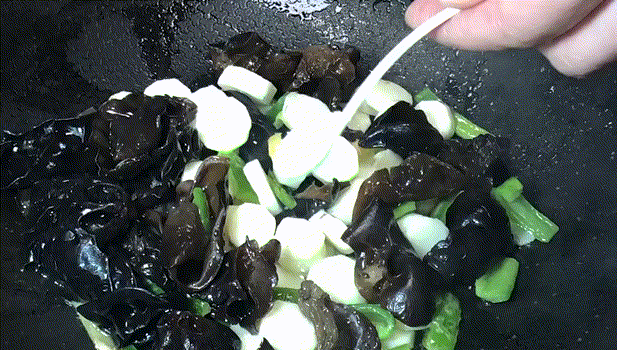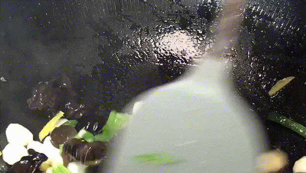 5.放入木耳,開大火翻炒。