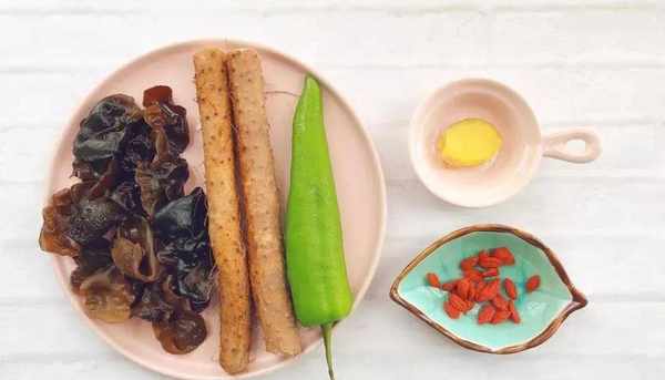 主料:山藥、木耳、青椒