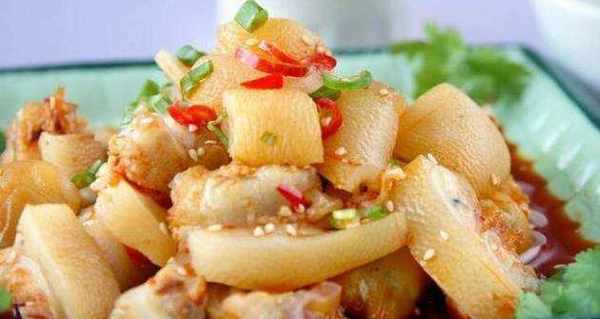 第二個想要介紹給大傢的美食就是涼拌豬蹄,豬蹄富含膠原蛋白,它能防治皮膚幹癟起皺、增強皮膚彈性和韌性,值得大傢嘗嘗