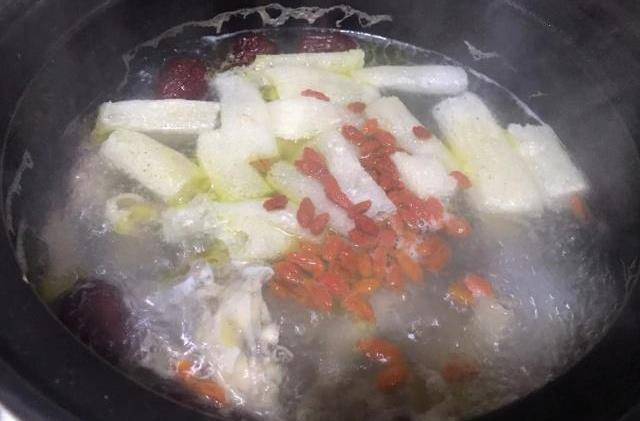 4.接著放入紅棗,枸杞,竹蓀,繼續煲20-30分鐘;