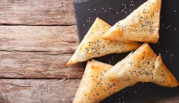 在6張餃子皮上分別刷上一層薄油,撒上蔥花和少量的鹽、白芝麻、五香粉,把餃子皮疊起來後從邊上開始卷起來後圍成圈,用手壓扁後用卷起來,再壓扁後用油煎至金黃即可。