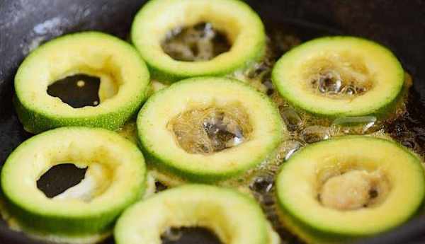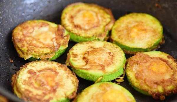 6、小火煎至西葫蘆凝固瞭,在西葫蘆中間打入鵪鶉蛋,並撒點鹽、白胡椒粉調味。