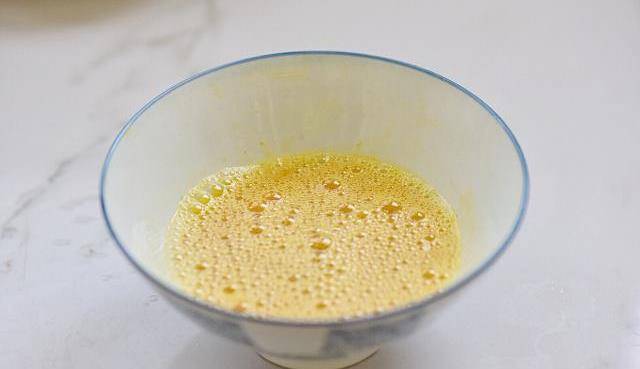 3、2個雞蛋打散,加入鹽、白胡椒粉、芝麻油調味。