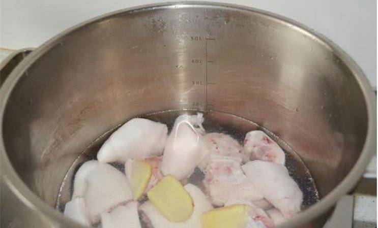 首先我們將買來的豬蹄,把上面的毛刮幹凈,然後剁去爪尖砍成大小適合的塊,將豬蹄放入冷水鍋中,鍋內放一些薑片,倒入適量料酒去腥,水開一分鐘後撈出焯水, 這裡需要強調大傢註意的是豬蹄焯水的正確方法,一定要用冷水,因為隻有冷水才能焯出豬蹄中的血水、臟東西,可以使豬蹄做出來更加的香和軟糯。