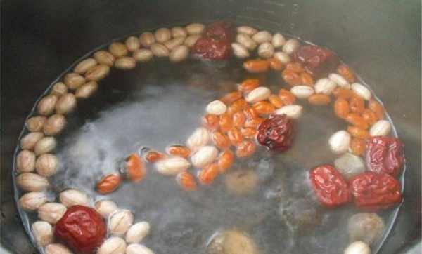 接著我們把花生米,枸杞,紅棗泡透,最好是在頭天晚上就泡上,這樣更容易把它泡透,把紅蘿卜去皮切成小塊,再取一塊生薑切成片,一切準備就緒,以後下面就可以整鍋開燉瞭,這裡我們說一下鍋,最好是用砂鍋,因為豬手要小火,慢慢燉,隻有這樣才能把豬手中豐富的膠原蛋白和營養全部燉出來。
