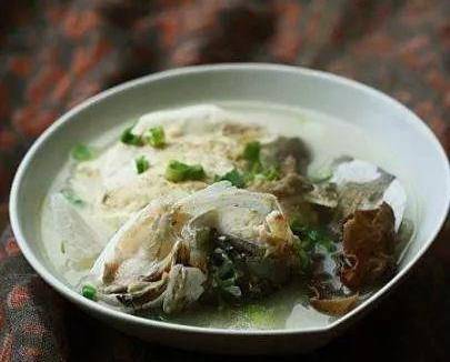 魚頭洗凈晾幹豆腐用水煮開切片待用砂鍋入多水大火煮開同時將魚頭一剖兩半入油鍋煎過再把蔥薑放入炒鍋底煎香一起移至旁邊的砂鍋內滴入一點黃酒大火將魚頭湯煮滾轉中火十分鐘左右一定要中到大火煮一會兒魚湯才能白再轉小火二十分鐘左右倒入切片的豆腐大火煮滾加鹽出鍋食前撒上青蒜花和川椒粉即可上湯娃娃菜