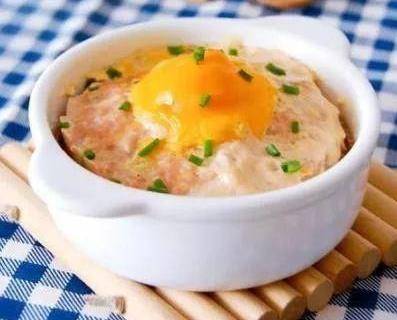 用料豬肉200克;生咸蛋1個;蔥少許;薑末少許;料酒1小勺;鮮醬油1小勺;淀粉1小勺(或燕麥片1大勺);水1大勺做法