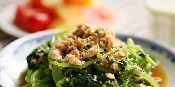 其實用土豆、槐花來做比較好吃,今天用芹菜葉來做……為瞭減肥,也為瞭養血補虛……(用土豆做,就把土豆擦成小絲)芹菜葉洗幹凈,瀝下水分,切碎。把芹菜碎放在面盆裡,加入高粱面、莜麥面、黃豆面、適量的鹽和十三香。(沒有粗糧面,可用白面代替,白面更好吃)用雙手搓或用筷子充分攪拌,讓面粉充分的黏在菜葉上,最好的效果是菜葉上有很均勻的一層面粉。隔水上鍋蒸,20分鐘。如果量多,就在中間挖個小洞,容易熟。蒸熟後,有兩種吃法。方法一:搗蒜泥,加入生抽、香油、辣椒油、老陳醋。拌入不爛子,即可。方法二:熱鍋入油,爆香蔥蒜末和幹辣椒,倒入不爛子,炒香炒散出鍋。(推薦方法二,炒一下更好吃)金槍魚拌茼蒿