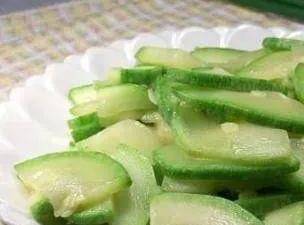 把西葫蘆洗幹凈,連皮切成片,用點油、鹽炒炒就行瞭咸蛋蒸肉餅